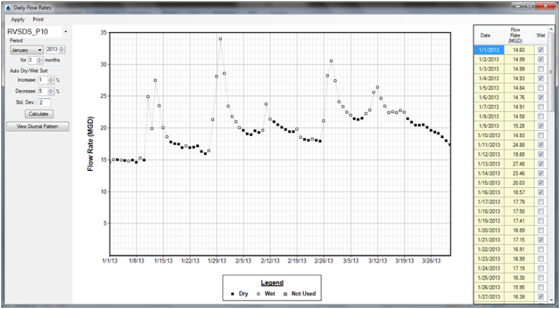 ASIDD is used to calculate flow rate through a sewer reach during a discrete time interval which is compared to flow rate determined from a meter, pump curves, wet well drawdown times, or other flow rate measurement technique. This comparison is used to determine an adjustment factor which is generated in ASIDD which can easily be tracked over the lifespan of the flow measuring instrument.
