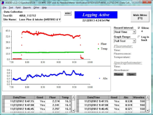 ASI has developed an in-house software program called ASI Dye-Dilution (ASIDD) to streamline data collection and processing during dye-dilution testing. ASIDD provides a means for data to be simultaneously collected, graphed, and reviewed. The software also allows for real-time test troubleshooting, repeatable and consistent analysis methods, and test error analysis.
